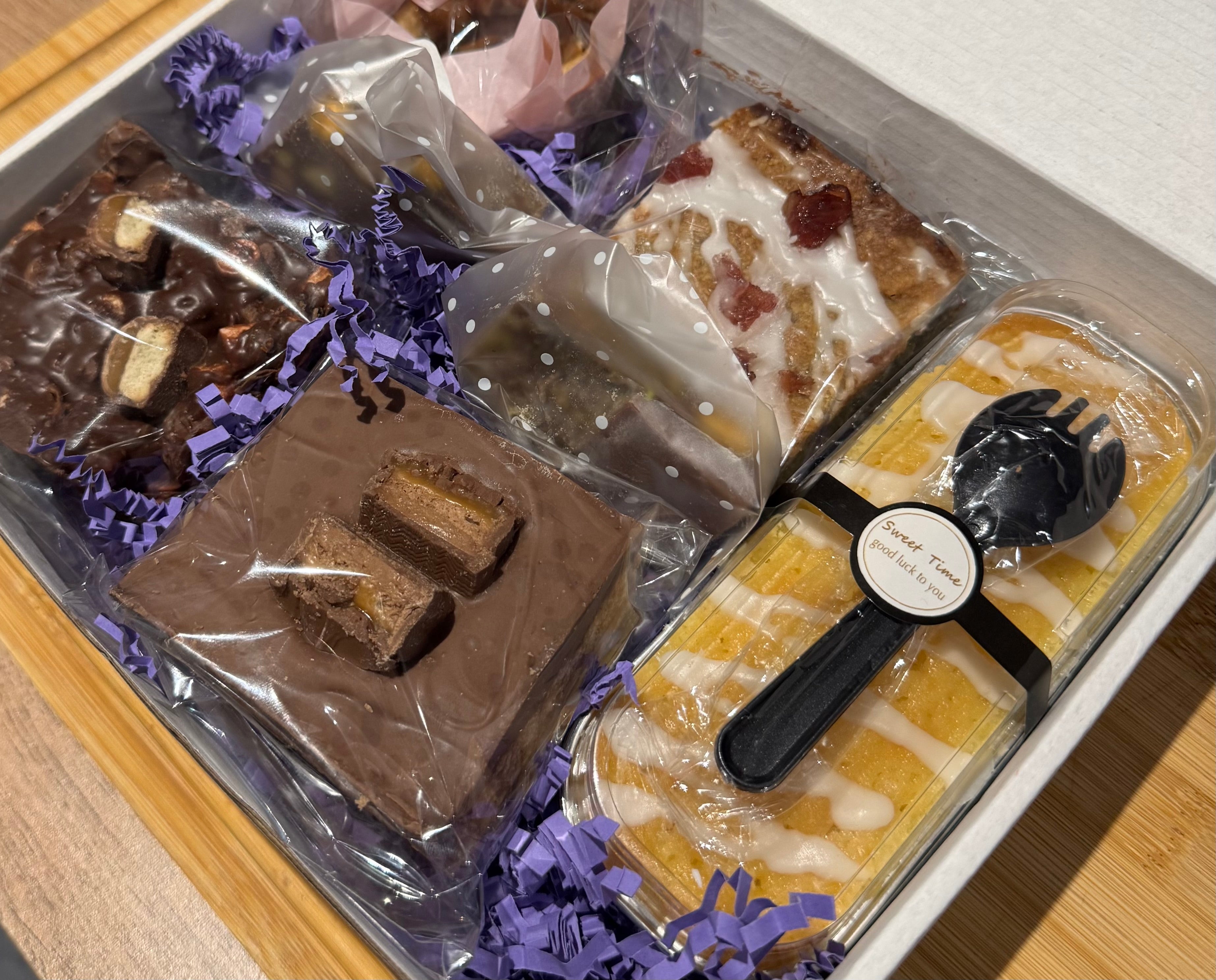 Choose any 2 to 8 bakes to create your own custom box — all freshly made, beautifully wrapped, and finished with your chosen design. Add a personalised card or message to make it the perfect gift.